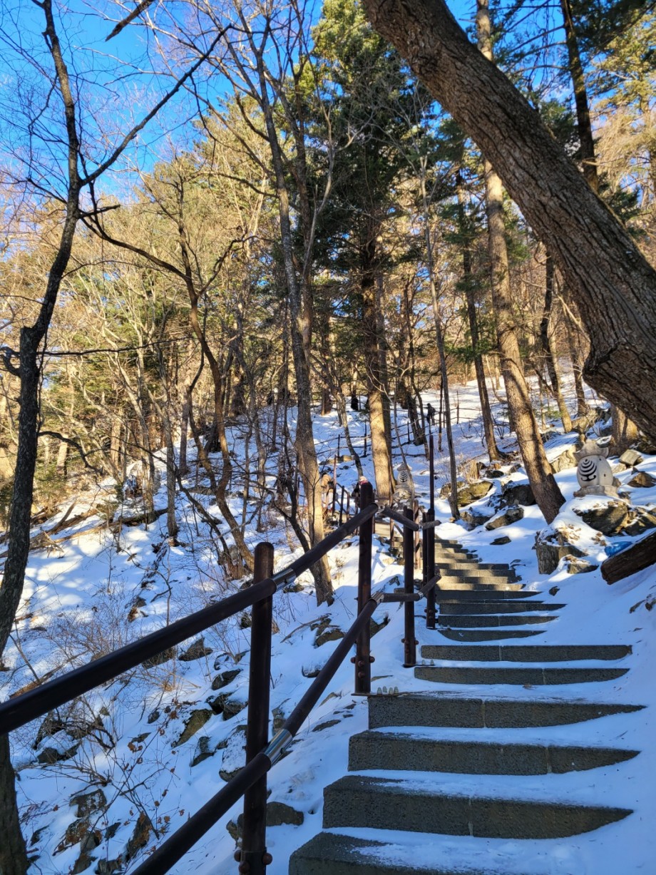 눈이 쌓였나 걱정했는데 중대 사자암에서 눈을 치워주셔서 한결 좋았습니다.