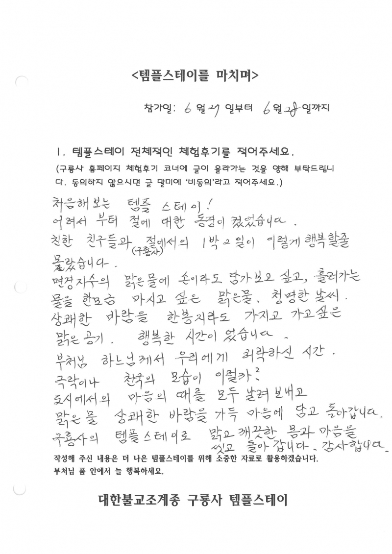 템플스테이. 033-731-0503E-Mail. guryongsa@hanmail.net