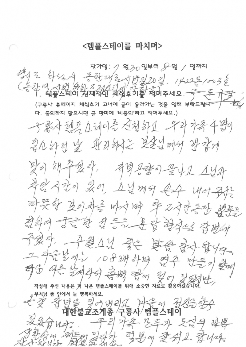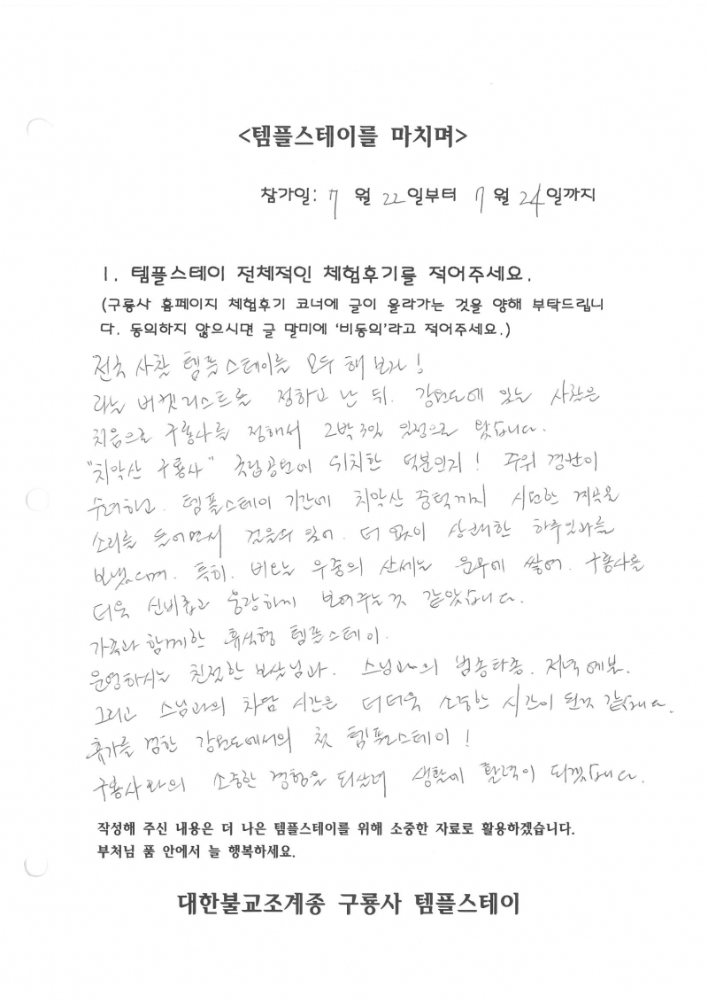템플스테이. 033-731-0503E-Mail. guryongsa@hanmail.net