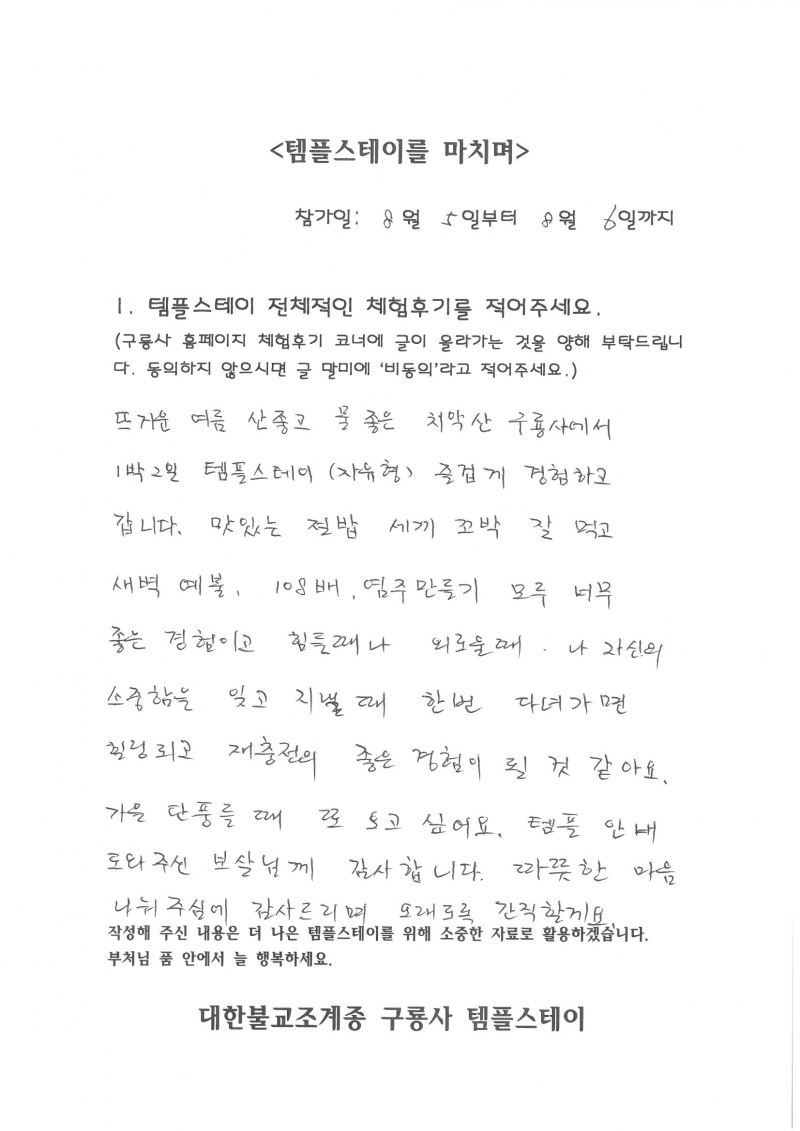 템플스테이. 033-731-0503E-Mail. guryongsa@hanmail.net