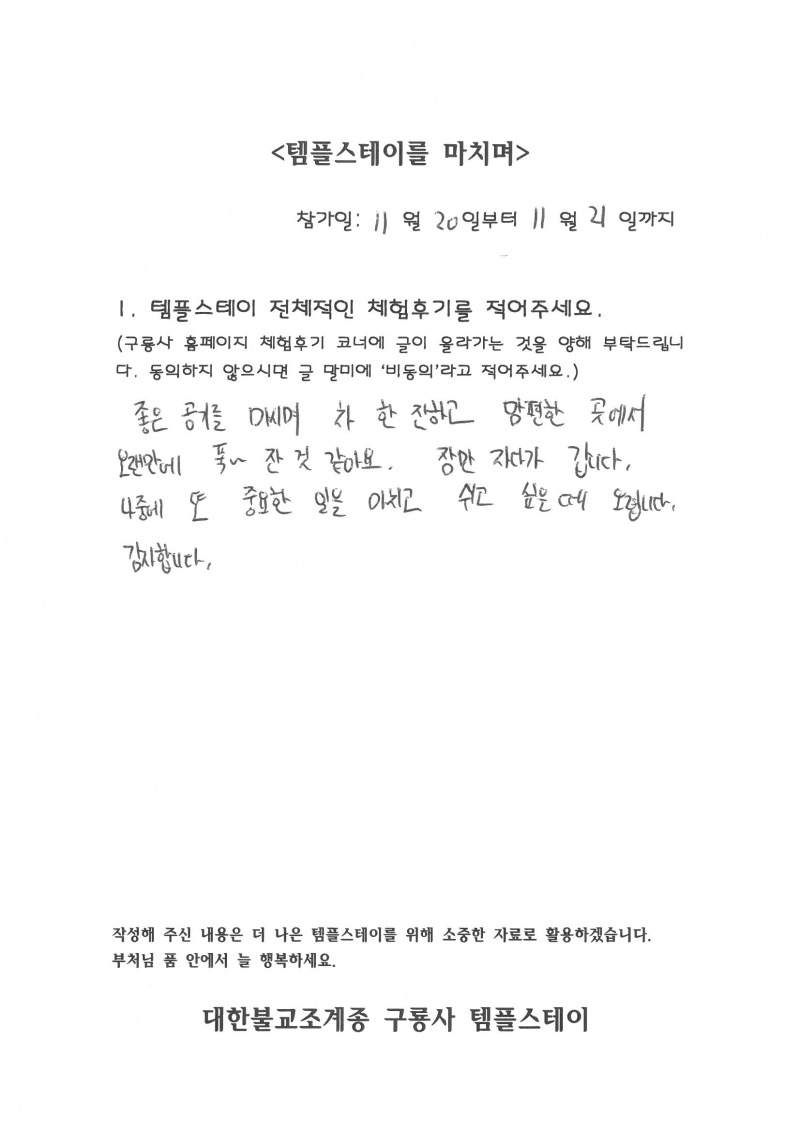 2022년 11월 넷째주 체험후기