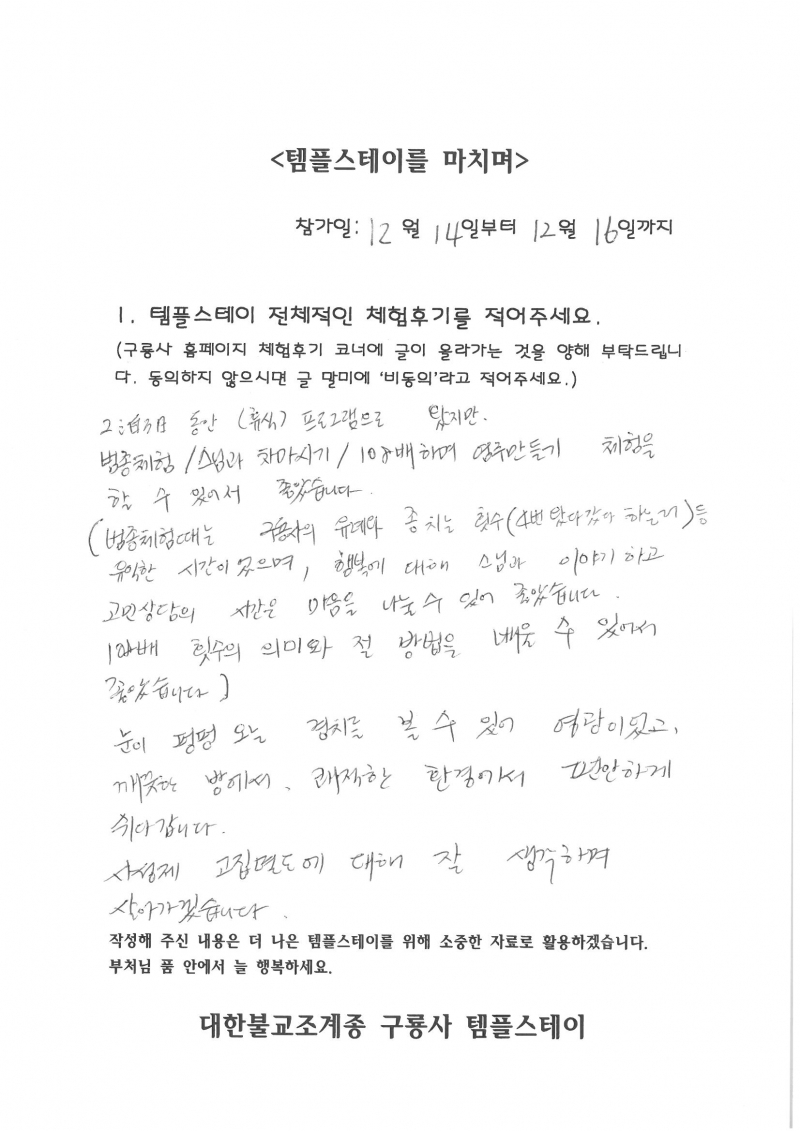 템플스테이. 033-731-0503E-Mail. guryongsa@hanmail.net