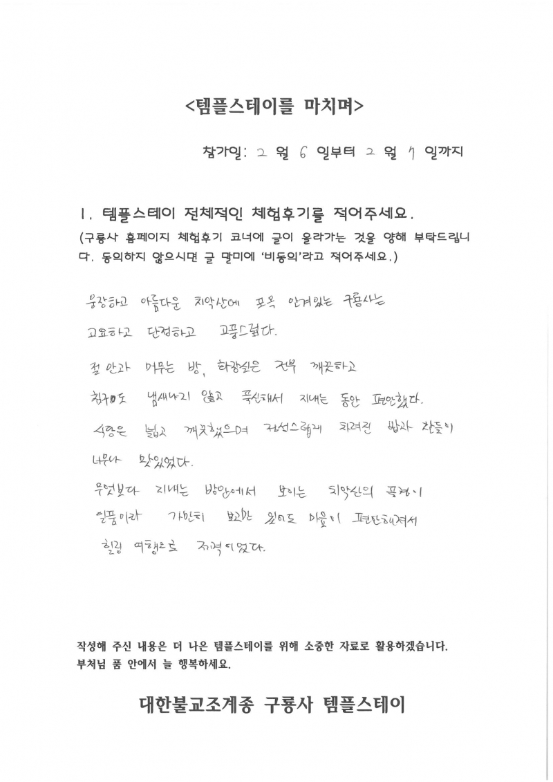 템플스테이. 033-731-0503E-Mail. guryongsa@hanmail.net