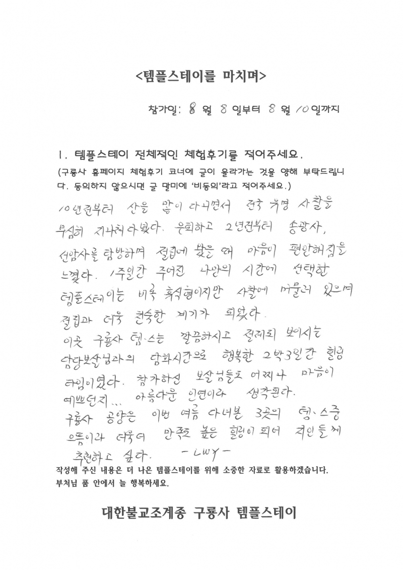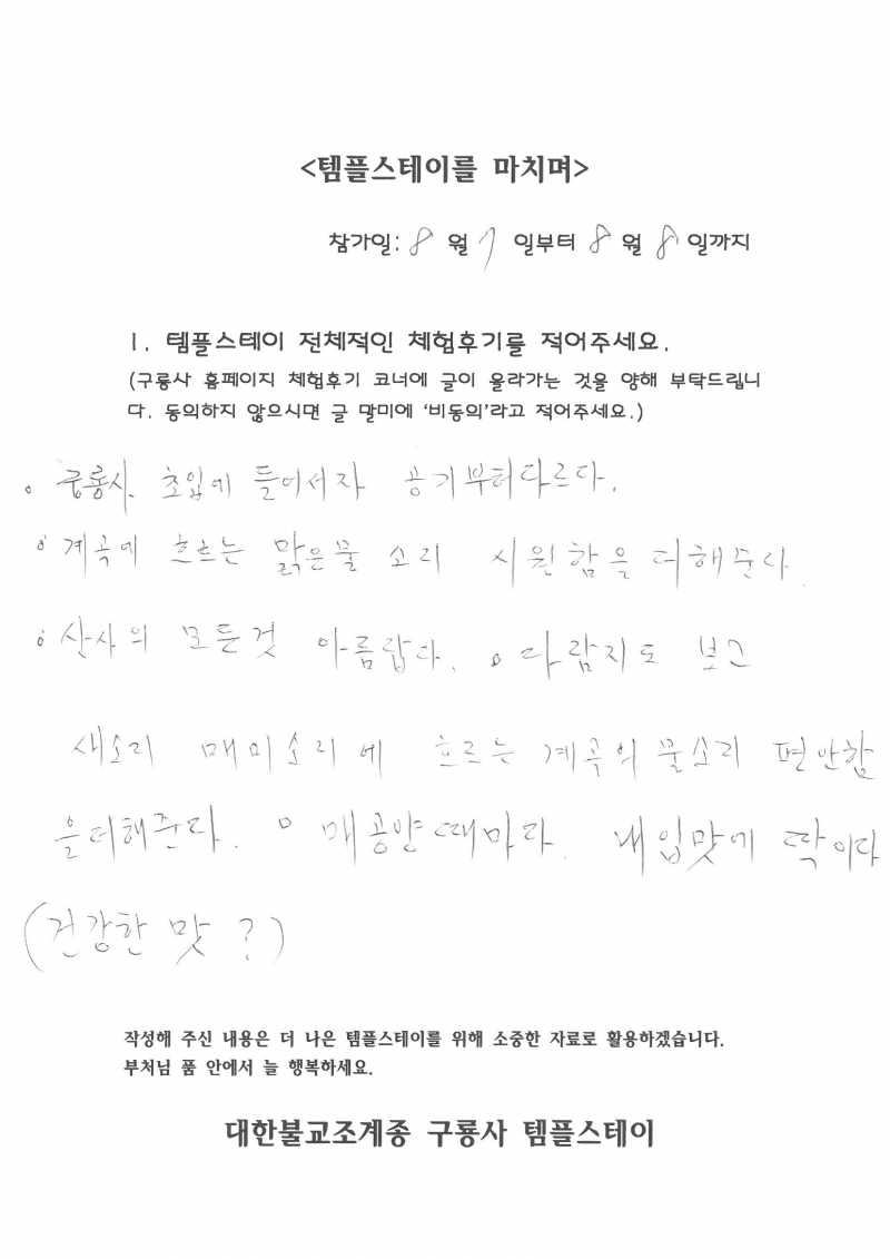 템플스테이. 033-731-0503E-Mail. guryongsa@hanmail.net