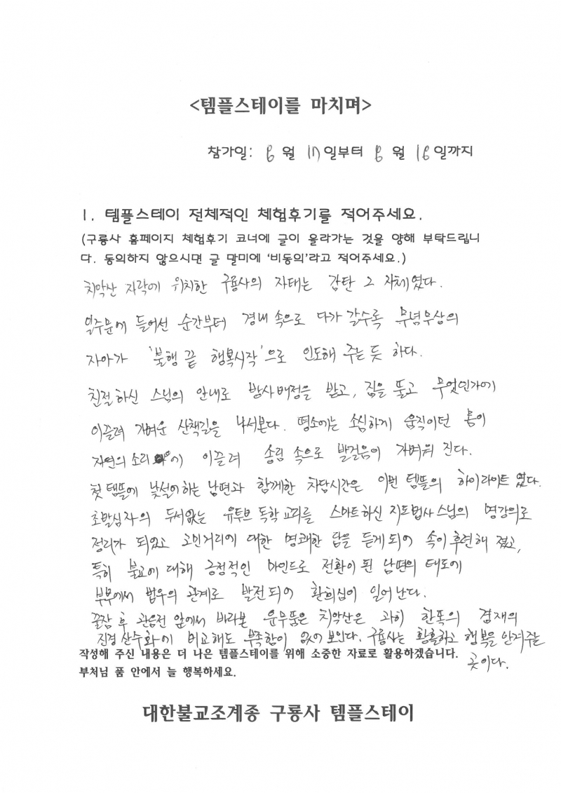템플스테이. 033-731-0503E-Mail. guryongsa@hanmail.net