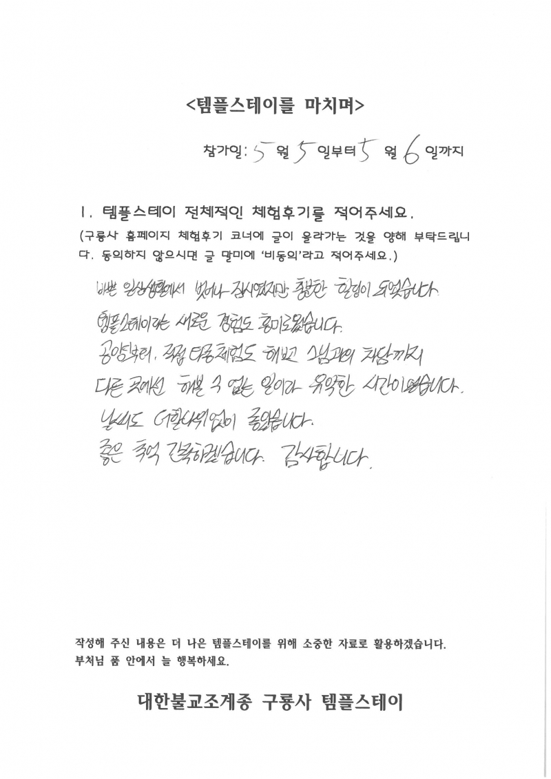 2022년 5월 첫째주 체험후기