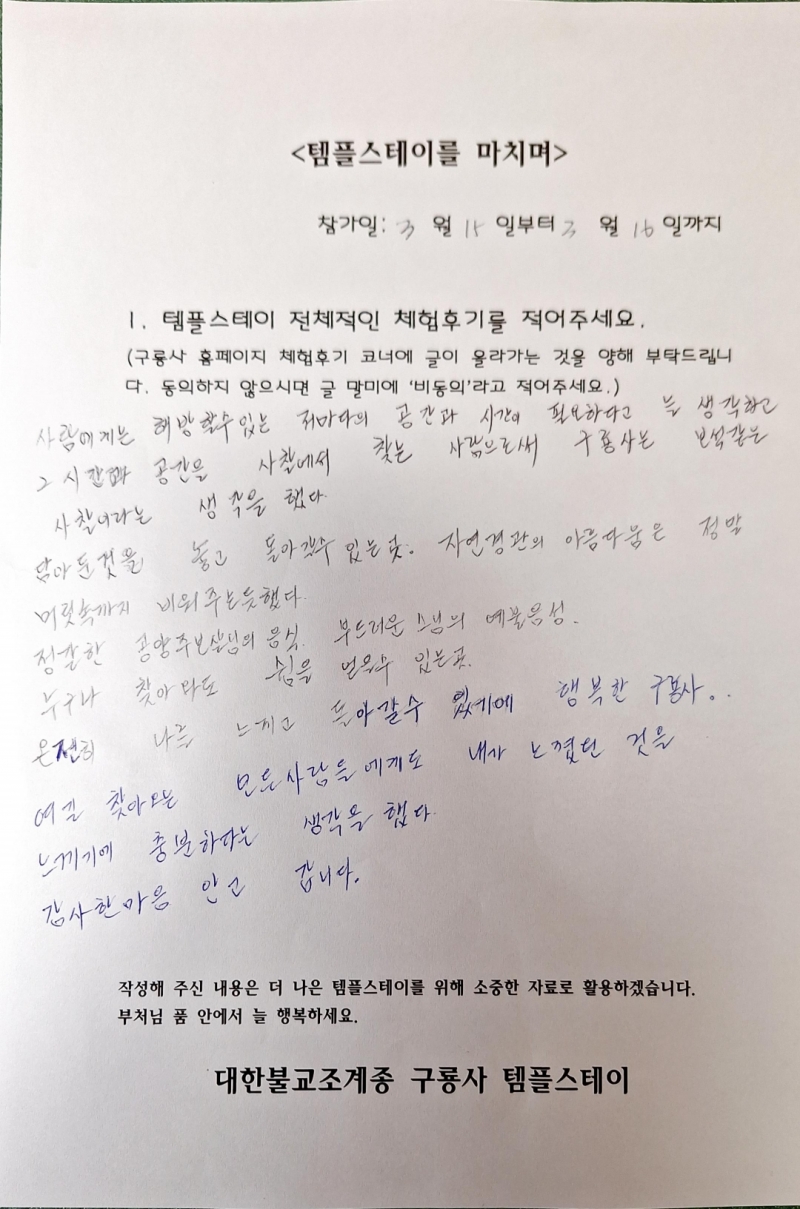 템플스테이. 033-731-0503E-Mail. guryongsa@hanmail.net