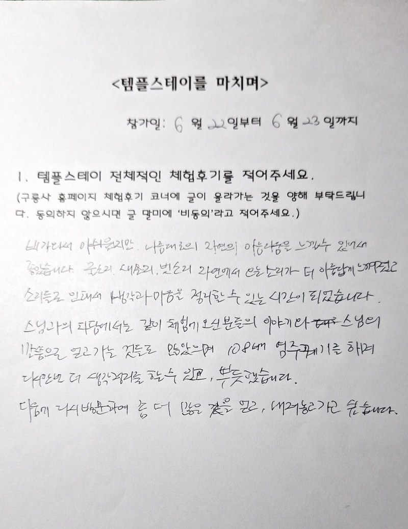 템플스테이. 033-731-0503E-Mail. guryongsa@hanmail.net