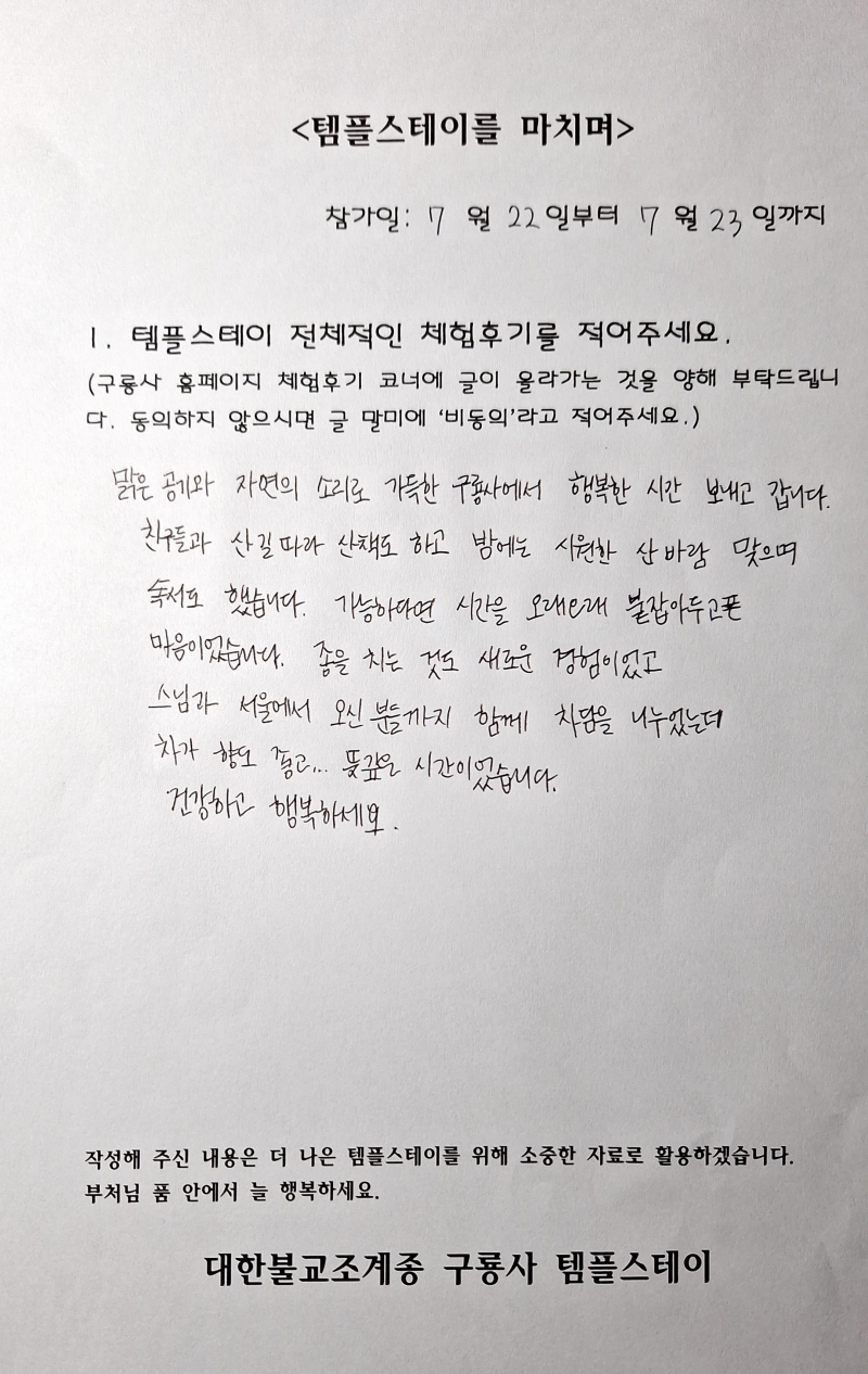 템플스테이. 033-731-0503E-Mail. guryongsa@hanmail.net