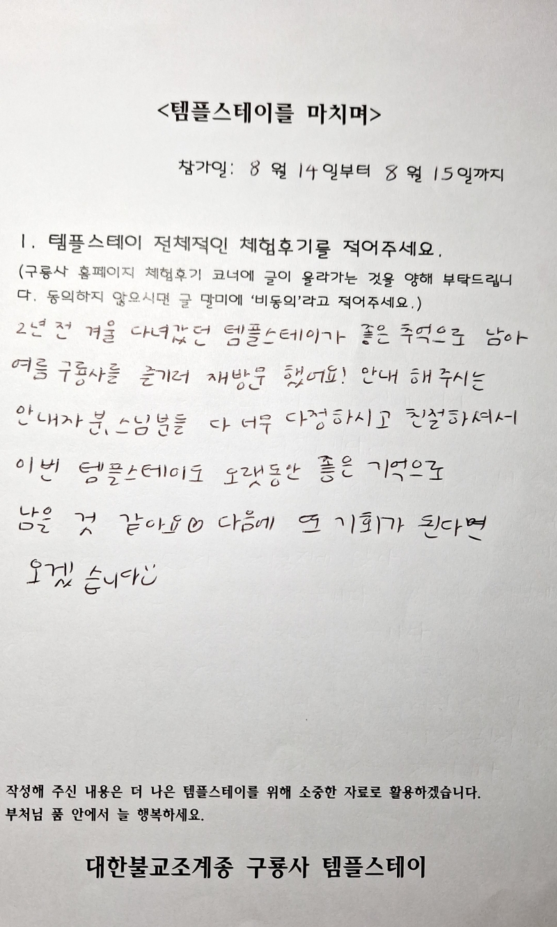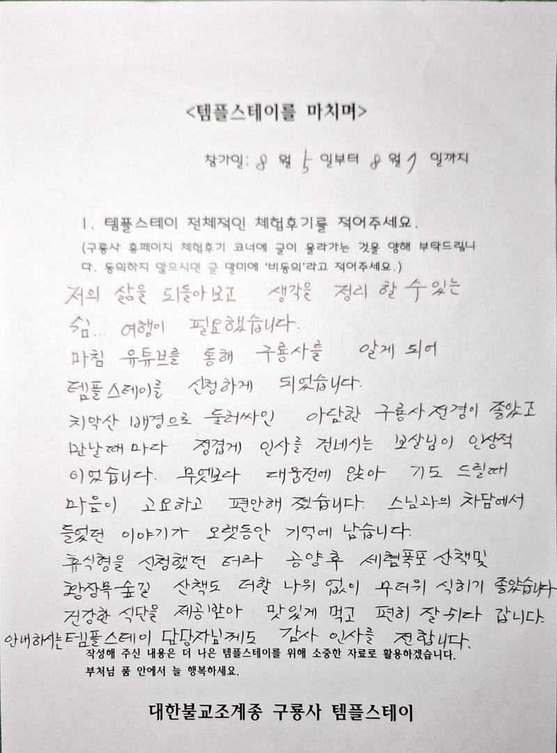 템플스테이. 033-731-0503E-Mail. guryongsa@hanmail.net