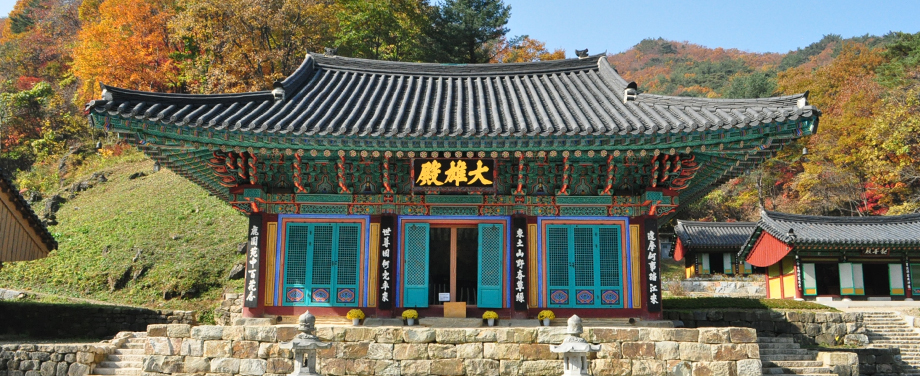 대웅전은 전면으로 보아 기둥위에 공포(주심포)를 두고 주심포 사이에도 공간포를 이조식 배치한 다포계양식이며 팔작지붕으로 되어있다. 공포의 외부 제공은 앙활형이 중첩되었고 앙성 윗몸에는 각각 연꽃을 조각하여 화려하게 장식하였으며, 내부 제공은 하나로 연결하여 당초무늬를 조각하였다. 특히 불상위에 있는 보개는 중층으로 되어 특이하다. 천장의 중앙부는 우물천장을, 둘레에는 빗천장을 가설하되 연꽃과 봉황, 운문, 비천상등을 채화하여 금단청과 함께 매우 화려하고 장엄하다.