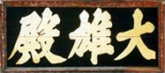대웅전 편액대웅이란 위대한 영웅이라는 뜻으로 <법화경>에서 석가모니 부처님을 표현한 말입니다. 즉, 큰 힘으로 사마미(四魔)를 항복시킨다는 뜻에서 붙여진 부처님의 덕호(德號)에서 유래한 것입니다.